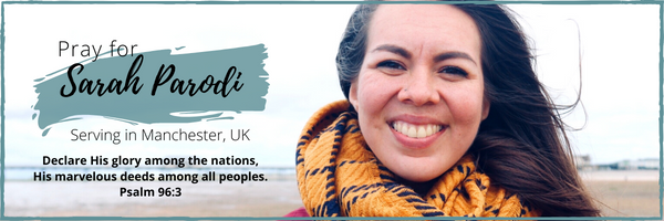 Sarah Parodi serves with Pioneer Missions in Manchester England. Sarah was a worship leader here at Risen King and moved to Manchester to work with her father in planting an international church out of the Chinese Alliance Church in Manchester. She ministers to internationals and refugees from North Africa, the Middle East and beyond who come to Manchester for University studies. She is also very involved in teaching multicultural worship to churches and organizations.